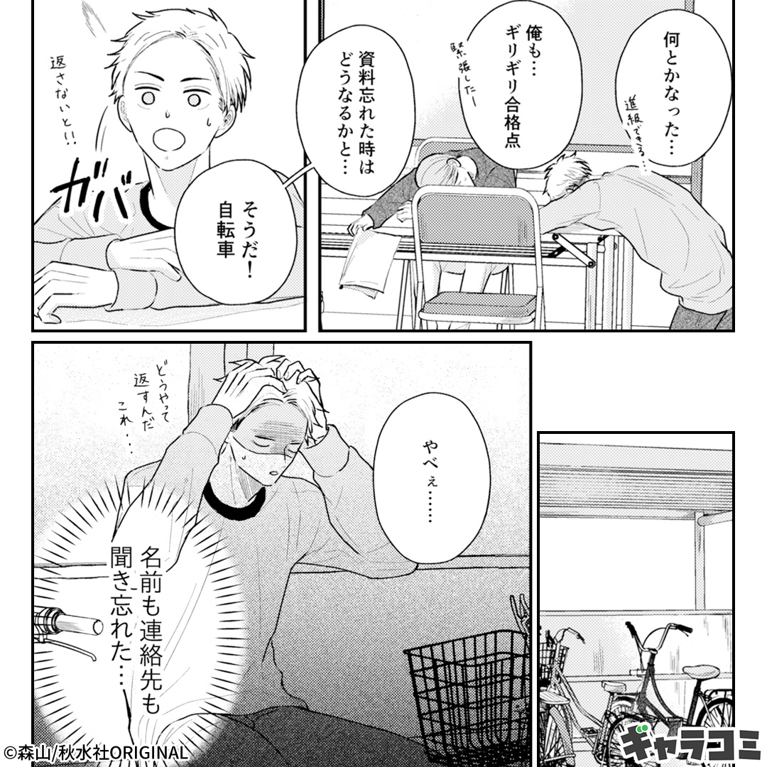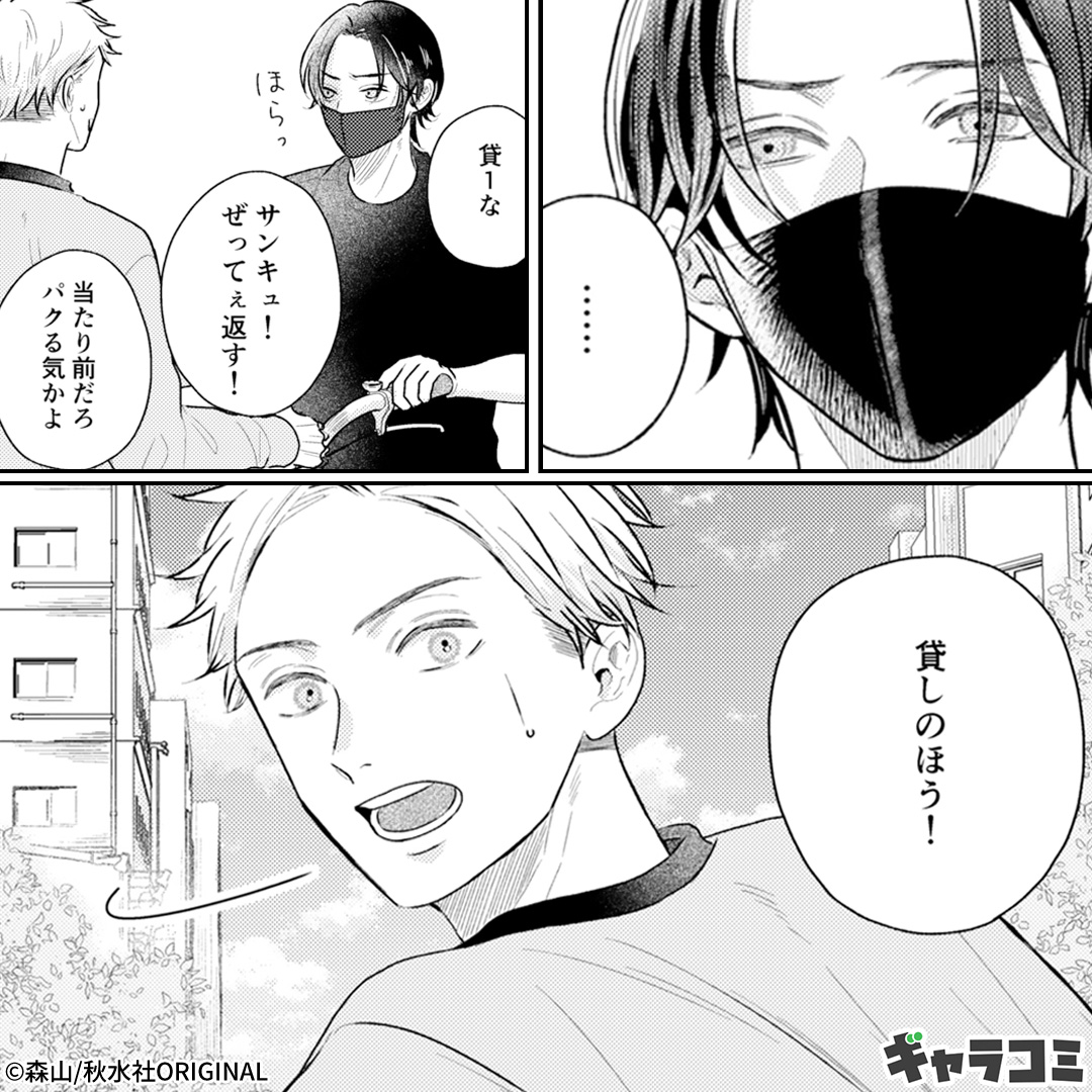 今日のラッキーパーソン『赤いママチャリに黒ずくめのイケメンくん』!?偶然と嘘が重なっていくご近所ラブコメBL。