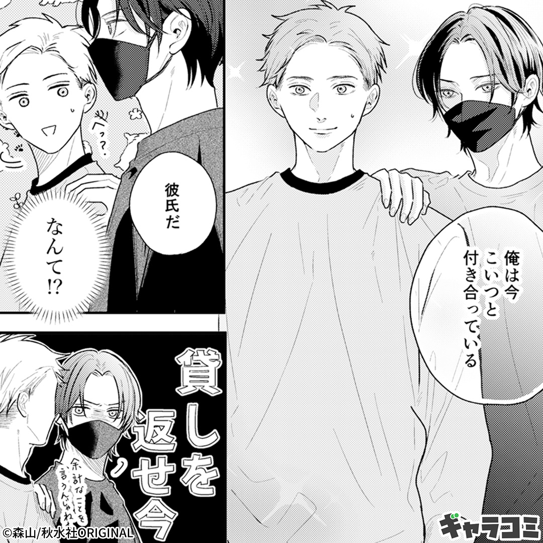 『うっかりミスが命取り』朝占いの予言通り進級のかかる論文発表に遅刻しかけている大学生の春原。道中で自転車に引かれかけるも、相手は今日のラッキーパーソン『赤いママチャリに黒ずくめのイケメンくん』!その場で自転車を貸りて見事留年回避に成功する。相手の名前も連絡先も聞きそびれたけど、自宅に帰ると運良くあのイケメンが女の子と隣部屋の前に!こちらに気づいたイケメンこと青柳が「こいつと付き合ってる」女の子に向かい交際宣言!?言い寄られている状況を理解した春原は、青柳の作戦に乗って女の子の前でキスしたら、意外にも青柳はタジタジな様子。それでも効果てきめんなことから彼氏のフリは続行することになり――?
